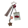 1 keychain - deadstock vintage (early 00s) heavyweight glass block w/ car + girl, star silver clasp, light purple suede tassel, plaid button, dark drop chain, bubble gum pink iridescent bead, star "HOPE" silver charm